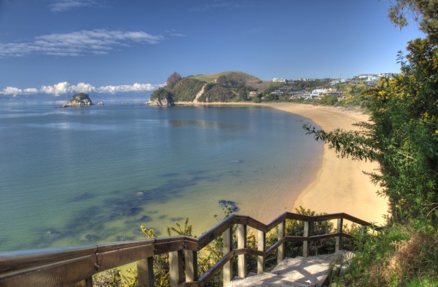The little sister of the 15 minutes away touristic kaiteriteri area is much nicer to sit (if the sandflies let you) and pass the time. The beach is almost as long, the street is far away, big villas line up the hill and there are no intertidal mud flats (like at Motueka). We had a rock-ing adventure!