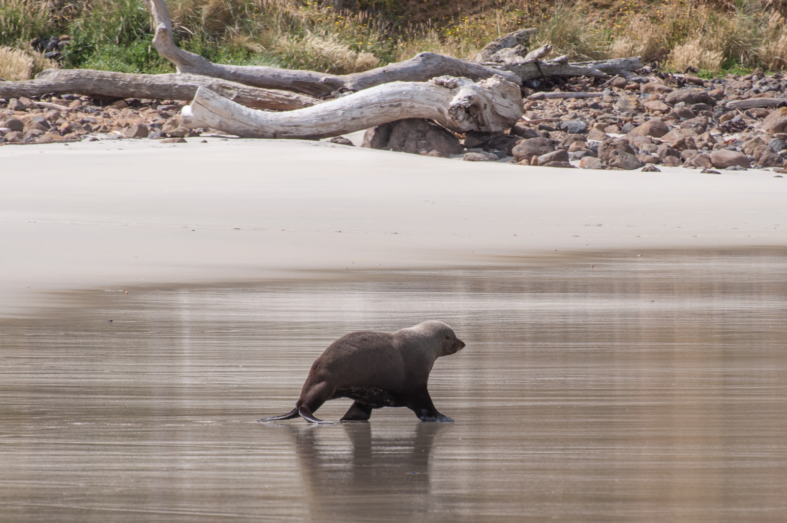 The name’s not about sandflies, but about the sand, that flies. Once you are there and walk down the endless dunes, you’ll understand. That evening, sand was coming out of every trousers, sock, shoe, backpack, pore, ear, nose or hairdo we’d had with us. Not there was any hairdo after that windy beach … the sea lions loved it, saw a lot of them. Didn’t stay for the yellow eyed pinguins though.