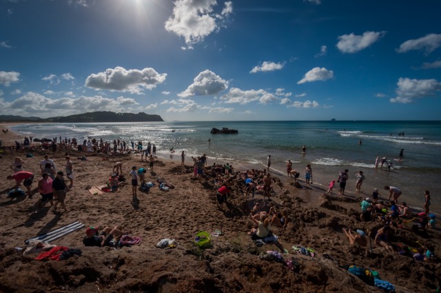 No more time to loose! If we’re supposed to make it back (to Motueka) in time, we got to drive more. Skipped (lovely) Tauranga for the next destination: Coromandel Peninsula. Sometimes it occurred to us, that the second visit of a place didn’t live up to its reputation, but Hot Water Beach certainly was none of these. It’s always a winner (when you can ignore the masses of people that accumulate there at low tide, out of thin air)! The kids loved the idea of “swimming” again and we built them a little bathtub to soak in. But seriously, maybe we shouldn’t have chosen ANZAC Day for that particular spot.
