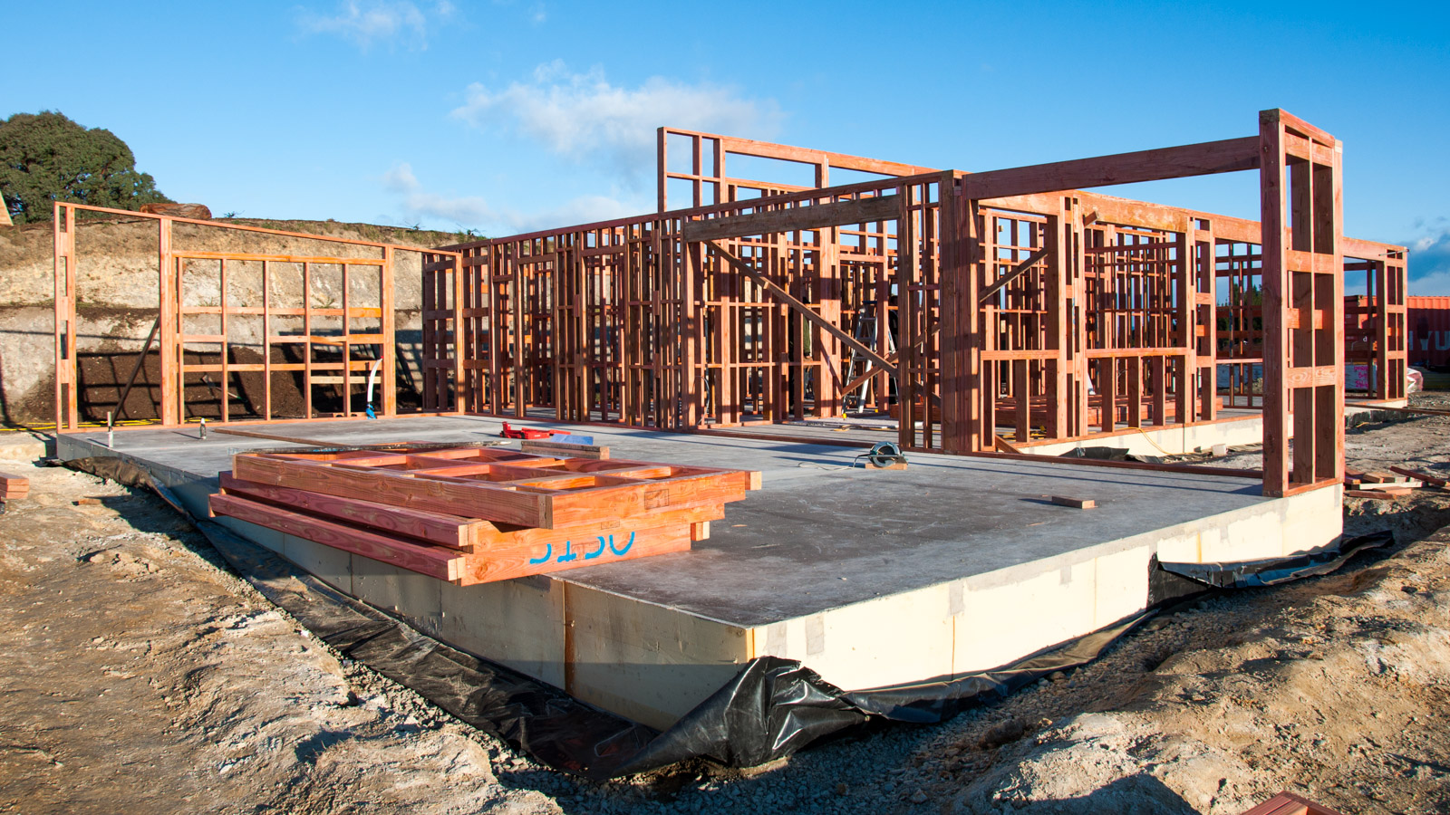 These guys are amazingly quick and to my surprise they appeared with pre-finished wall elements for the whole house today morning! The pictures show the progress of just one single day. :)