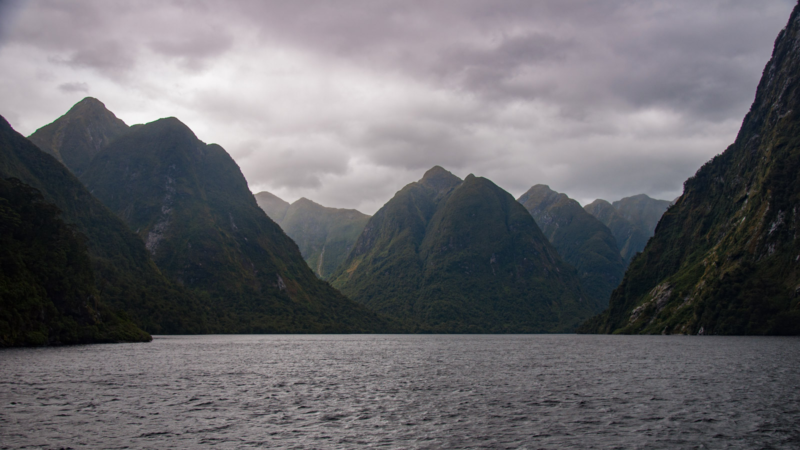 The steep mountains at Doubtful Sound..with their U-shaped glacier valleys…are truly magnificent…and majestic.The almost always available clouds do the rest.
