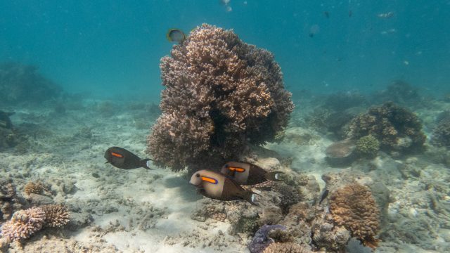 Blue-tailed copper-striped skink in the near coconut forest.Back on the beach.Towards the resort.Coconut leaf basket weaving workshop.Wow, amazing ;)Meanwhile, at the bar.And the daily snorkel trip not to be missed.Needlefish, always near the surface, eying at you.Catching fish… almost.Rivulated Parrotfish, a bit shy this guy.Photobombed once more!Sea cucumber, we saw only a handfull all week, which is nothing compared to the Cookies.Corals and fish.Who finds the name of this fish gets a prize.Two loners.It’s photobomb day.