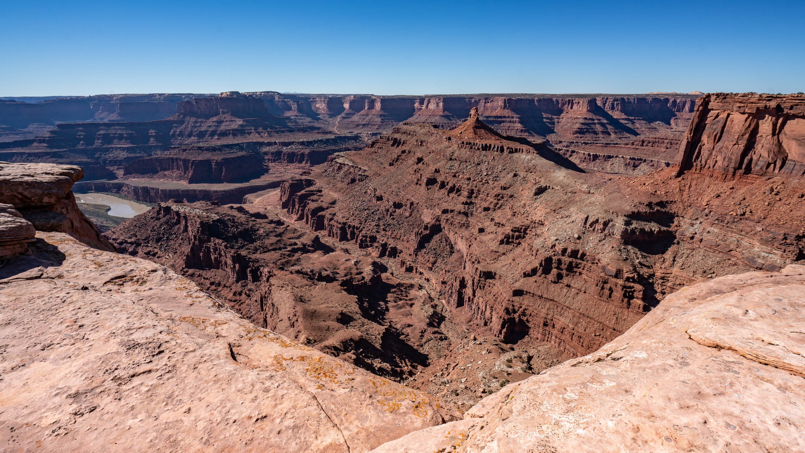 The legend of Dead Horse Point states that in the late 1800’s the point was used as a corral for wild mustangs roaming the mesa top. Cowboys herded them across the narrow neck of land and onto the point. The neck was then fenced off with branches and brush. One time, for some unknown reason, horses were left corralled on the waterless point where they died of thirst within view of the Colorado River 2,000 feet below.
