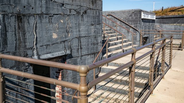 The first stop lets you dive in the times of slavery and civil war, dark chapters of American history.Mobile Point Lighthouse 4th Order Fresnel Lens 1873-1966.“Damn the torpedoes, full speed ahead!” (The Battle of Mobile Bay of August 5, 1864, was an engagement of the American Civil War in which a Union fleet commanded by Rear Admiral David G. Farragut, assisted by a contingent of soldiers, attacked a smaller Confederate fleet led by Admiral Franklin Buchanan and three forts that guarded the entrance to Mobile Bay. Farragut’s order of “Damn the torpedoes! Four bells. Captain Drayton, go ahead! Jouett, full speed!” became famous in paraphrase)Military Artillery Shells in a dungeon.This 40 cm metal ring is not a door knocker. Probably held a cannon in place.Stairs, a whole lot of them, up down the huge walls, into shelters, barracks, cannon touch holes. To the right – Gun Mount of Battery Duportail.Casemates are the arched rooms inside the fort designed as protected gun positions for the cannons but were often used for storage and living quarters.Main patio of the fort.Two flights of (steep-ish) stairs.The grassy area seen in the above picture between the tunnel and the sallyport is the dry moat – it is known as the “ditch” between the fort entrance and the glacis.On the other side of the tunnel, you arrive at the sallyport, the fort’s main entrance. Years ago I learned a design phrase that has stuck with me since. I use it in design whenever possible and love to notice it in the built environment. “At the end of every vista, there should be a reward.” As you near the end of the tunnel, the reward begins to reveal itself, the sallyport!Tunnelviews.Battery Schenck, named for First Lieutenant William Schenck who was killed in action during the Philippine Insurrection, was the second rapid fire battery constructed at Fort Morgan.