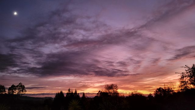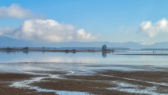 Midwinter, it has still not been very cold, but rained a lot, leaving us to foggy pastel coloured mornings.Once again, more clouds.But the sun broke through soon enough and it turned out to be a fine day.Walking the beach at Kina.Pompom giggles.Walking back from Baignets Recreational Reserve.The Motueka valley in winter.Ah, yes, the toes! He has grown considerably and this jumper will be comfy without feet from now on :)Mum’s a funny one.Every now and then she has to go outside though, tending to the animals, doing Mum stuff, but there’s always time for a quick wave!Time flies! Another Sunrise.In winter they are often very red, marvellous.Walking along the Motueka quai down to the saltwater baths and beyond.The houses were built away from the beach and with no street in between, it’s a nice walking track.The water is almost flat, with just the faintest ripples.Well, I forgot where we met this guy.Abutilon megapotamicum, flowering at the moment, this would be nice to have in the garden.The connecting walk between Rec Centre and Thorp’s Bush.What else is new? This girl got her learner’s license (and a free water bottle) and is now roaming the streets.After a few hours in Motueka we even dare to drive to Nelson for a girl’s day out.Sunset afterglow.The real show is more to the west, giant fiery clouds roll over the Kahurangi.And the next day, rain and fog are on again.Only in the late afternoon it clears up a bit.On the third day, the damp land can breathe again.