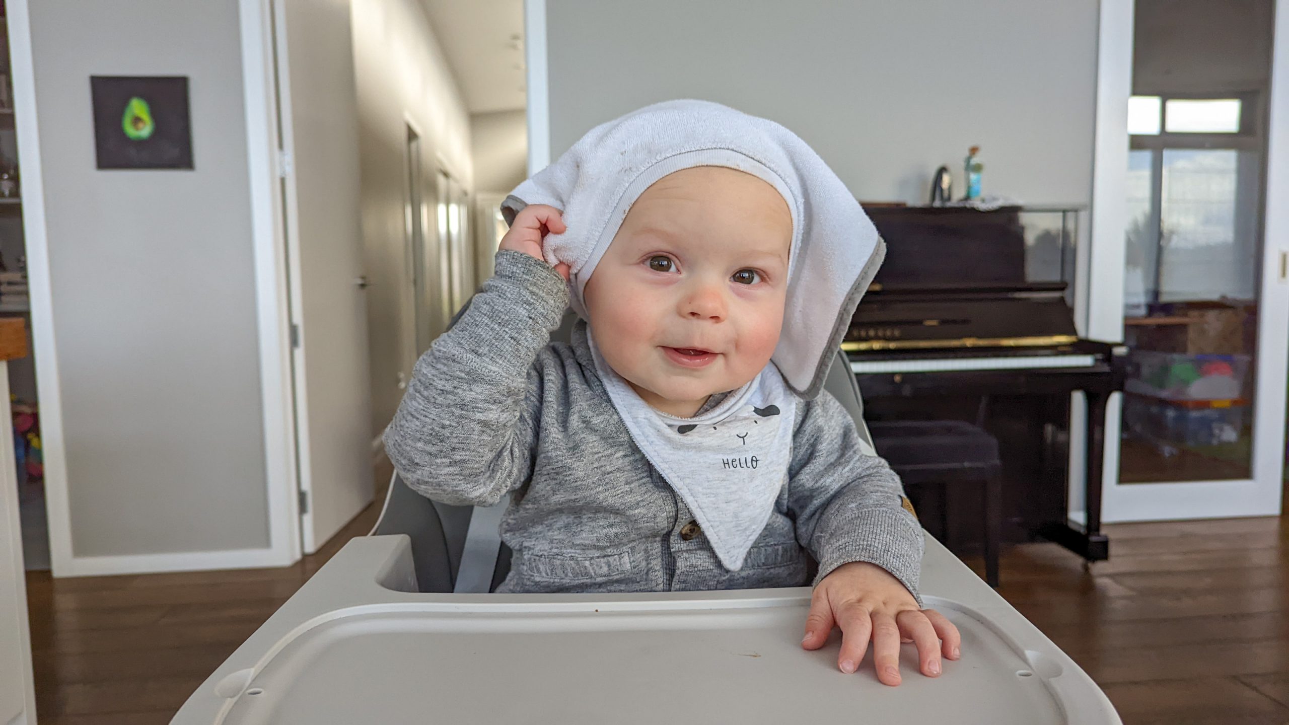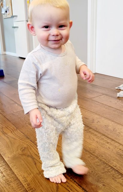 Wattles in bloom at Mariri.Te Mamaku Drive down the Redwood Hills.The Waimea Inlet with parts of Best and Rabbit Island.Driving past Haulashore Island, the harbour inlet and the Boulder Bank Lighthouse.Nelson State Cinema at Halifax Street.What looks like a very blue sunrise is actually a quick car wash.On the way back these bikers cross our path.Rolling hills of the Tasman.Far views from Te Mamaku Drive.Rowling Loop at the Moutere Inlet.Another small intlet in the inlet.And *schwupp* the day is over again.The little one is not so small anymore. His little antennas can swing over objects that are too high for his eyes and remove any food or other stuff that would be worth munching on.What will he be when he’s grown up? A question that popps up when a kid advances so much in their first years. At the moment, he’s Mama’s mannequin for repurposed old jumper-trousers.A nun? Nah.A chef? Would make sense.A truckie? Maybe.A playful character, whatever job he choses? Probably!He just loves teasing Dad by biting his toes :DAnd Dad loves to have him close, reading his new book (in Austrian dialect) to him.