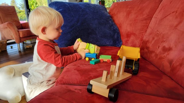 The last month you got quite a bit more social, you tend to have your own agenda and show more what you like and what you don’t. If you’re willing, you understand simple recurring sentences like “Can you put that in the trash bin” (takes the trash and dumps it into the bin) or “Do you want some milk/water/drink?” (Goes to the pantry and points to the space where the bottles are). Still doesn’t like talking, but knows random words, especially if they relate to cars, books or food ;) We love to play ball with you, you can throw them (the small ones really good, but also the big one), and you manage to build the train track together almost by yourself if given enough time. You love walks, even if it’s just a quick escape into the garden (but that’s why we love living here, in the rural area of the Tasman). You have grown, inside and out, go on little fella, you rock!